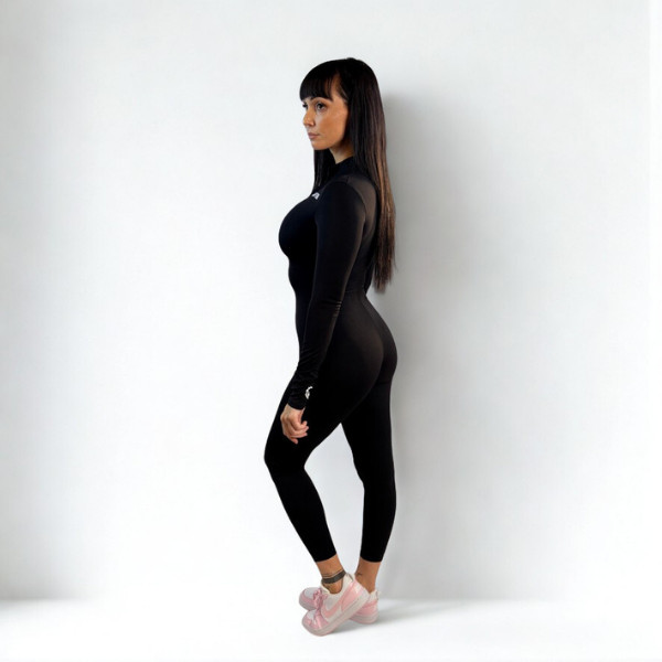 A GymRaptor ShadowForm nem egy átlagos overall – ez a darab a luxus érzetét és az edzéshez szükséges teljesítményt egyesíti. A fekete színű, hosszú ujjú, slim fit kialakítású egyberészes ruhadarabot cipzár egészíti ki, így egyszerre praktikus és szexi. Kiemeli az alakot, mégis kényelmes és légáteresztő, így akár edzés közben, akár hétköznapokon is ideális viselet.